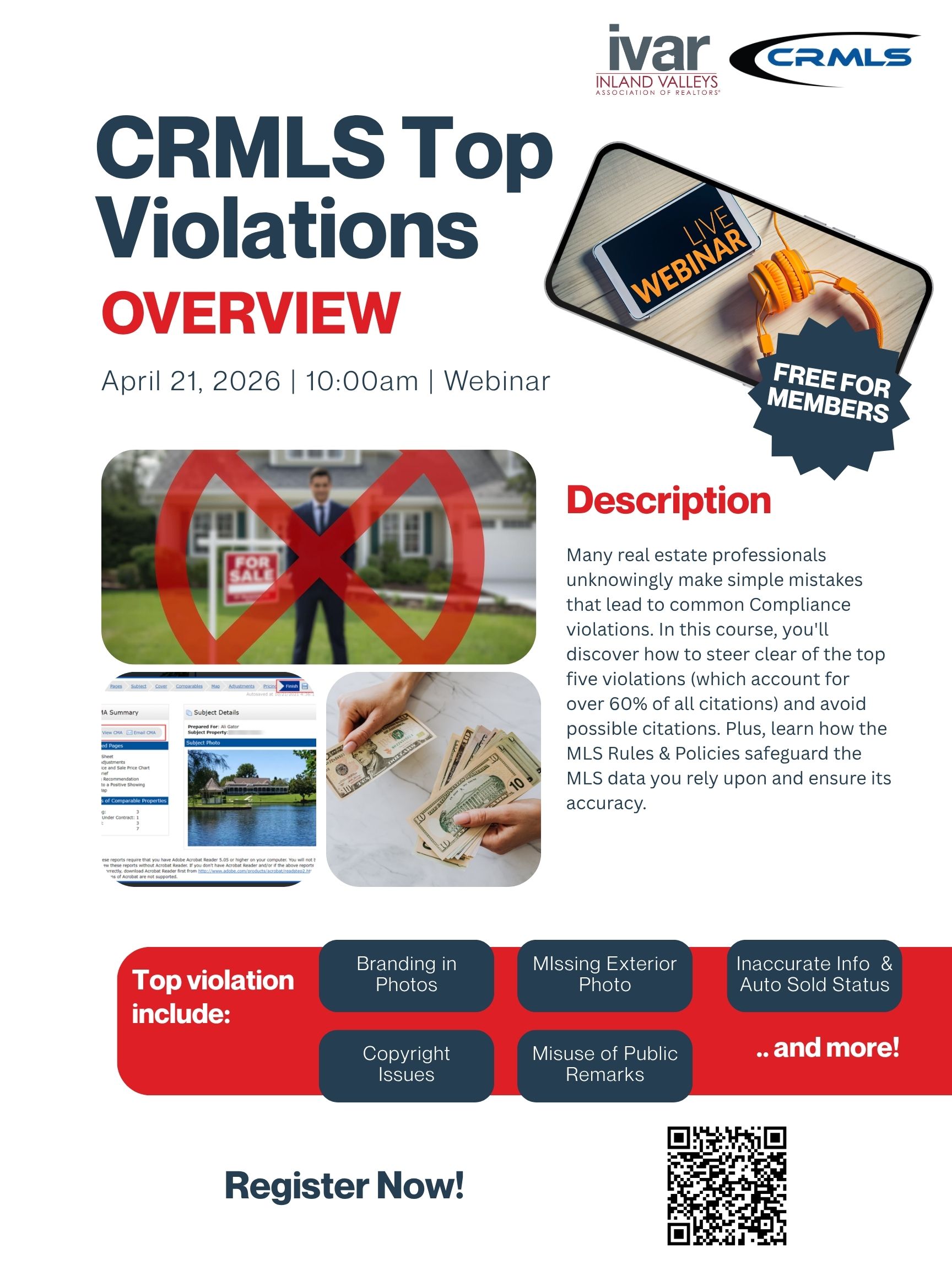 The MLS committee meets monthly to review changes, concerns and bring new ideas to submit to California Regional Multiple Listing Service (CRMLS). Committee members engage in discussions on current trends, new MLS platforms and share thoughts and experiences on day to day activities in order to improve, organize and level the playing field for all […]